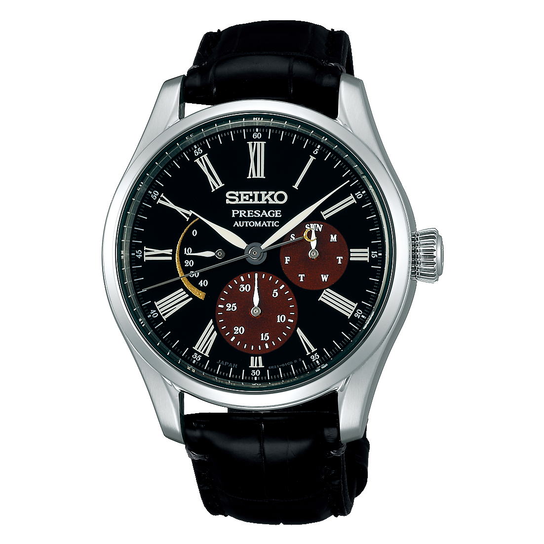 - Este mostrador de relógio é criado manualmente com lacado urushi. Por este motivo, podem existir ligeiras diferenças na cor ou distorções mínimas. Estas são características específicas dos mostradores artesanais em lacado urushi, não havendo dois iguais.