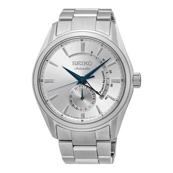 Presage is a collection of broad appeal. It comprises 60 models and uses the full range of Seiko’s mechanical calibers, from the accessible 4R, through 6R to the exclusive 8R. Highlights include the 6R27 multi-hand power reserve model and a series using an entirely new version of the 4R57 caliber. This new caliber is Seiko’s first ever with a center power reserve indicator, and is available in a series of five designs, including a limited edition. Every Presage watch has 10 bar water resistance and a sapphire crystal.