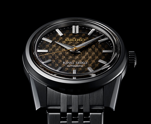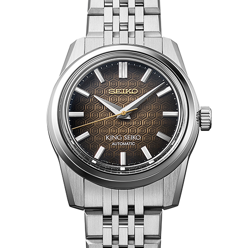 Moreover, the Kikkoumon is a nod to the 1960s origins of King Seiko, which was born at a facility in the Kameido section of Tokyo, once known as Kameshima, an area bounded by rivers and streams and known as “Tortoise Island.” The dial pattern has tremendous depth and texture – each hexagon is in fact series of three inset hexagons, each deeper than the last – and this depth is further expressed on the entire dial through a gradual darkening from the center to the edges.