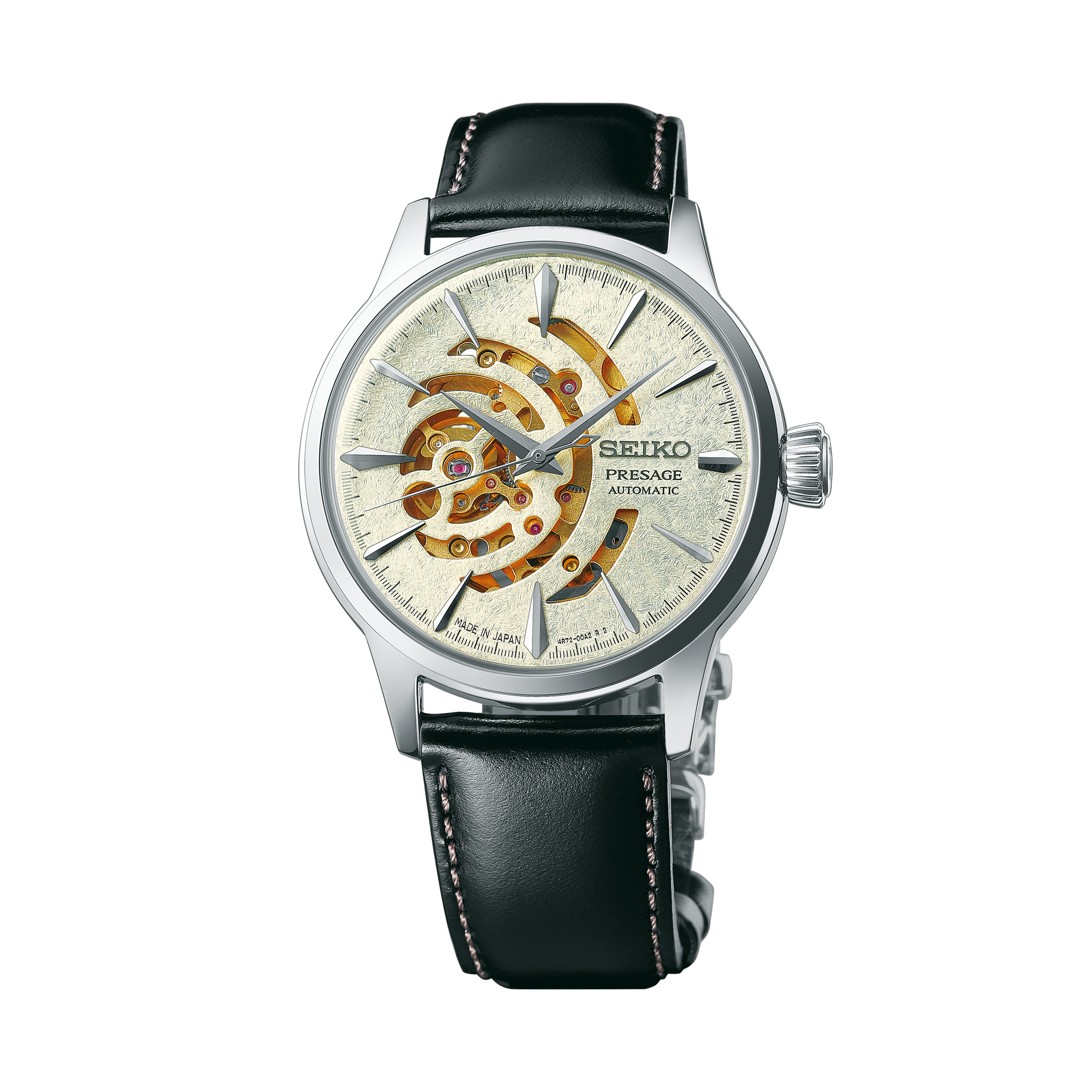 Equipped with the new caliber 4R72, each of these new models has a skeletonized dial design. It symbolizes ripples spreading out on the cocktail surface from the watch's heart, the balance.