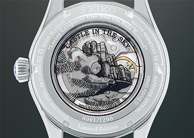 Ever since its birth, the Presage collection has been renowned for its unique balance of beauty and technology, combining its fine watchmaking technology with Japanese craftsmanship and art forms. Today, Seiko introduces into the Presage collection a creation inspired by the now-classic fantasy-adventure Japanese animation film “Castle In The Sky.” This is the first animation feature from the world-renowned Japanese animation studio, Studio Ghibli, whose works have won the favor of animation fans worldwide for their imaginative, other-worldly settings, distinctive visuals and masterful storytelling.
