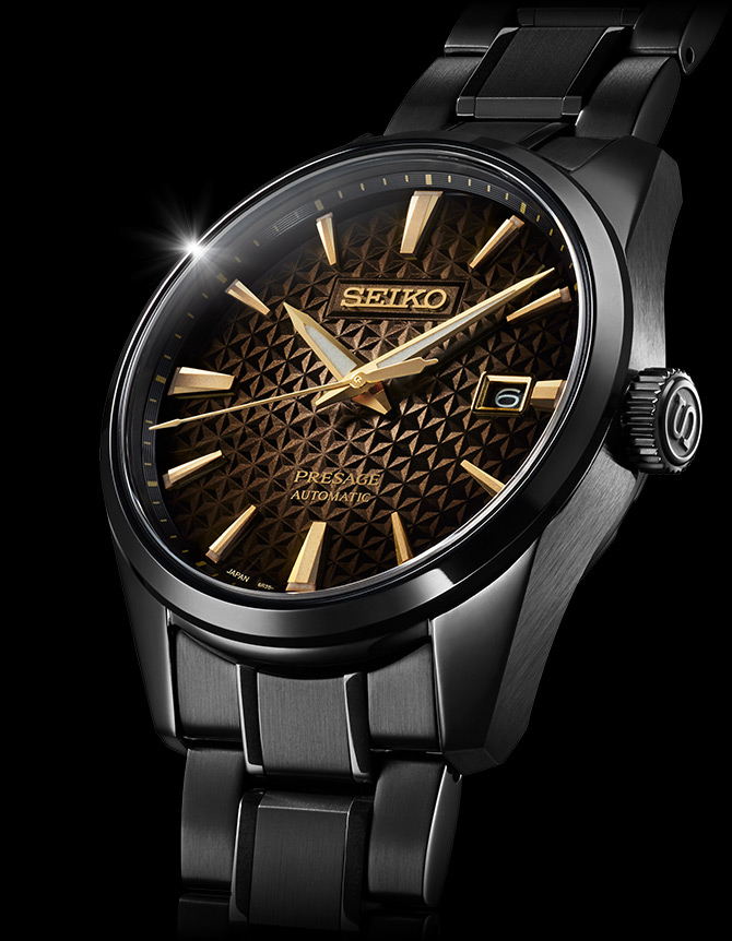 The Seiko Presage Sharp Edged Series case and bracelet incorporate many flat surfaces that have a modern sharpness that allows the watch to shine and sparkle from every angle. The precisely engineered and polished surfaces and the crisp edges of its silhouette contrast with the subtle hairline finish to create a pleasingly multi-dimensional effect.