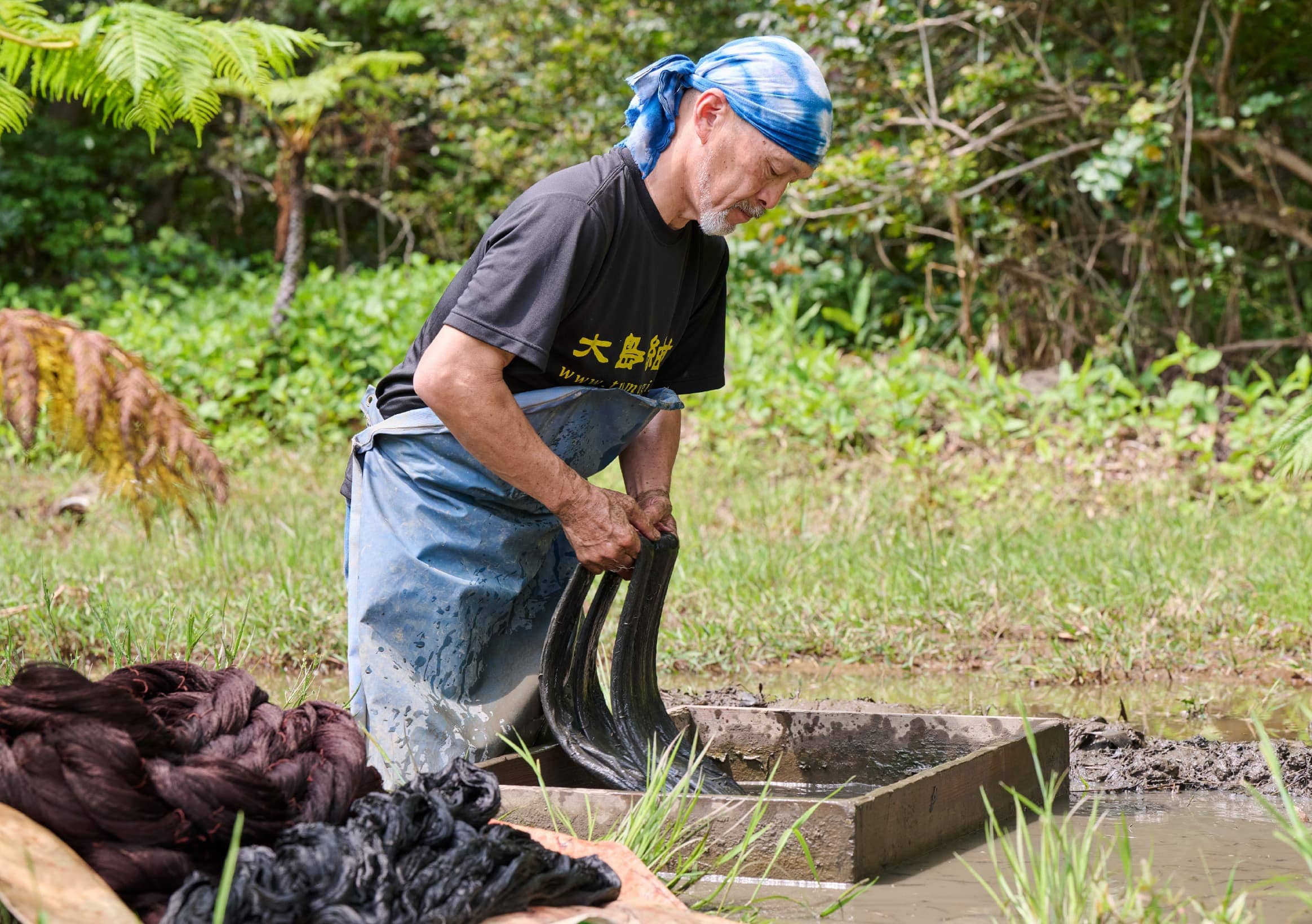 “Oshima Tsumugi could only have been born in Amami,” Mr. Koshima stated. The dyeing process relies on the region’s unique soil – rich in iron due to a meteor impact 1.5 million years ago. The resulting red mud allows for a deep, stable dye when combined with tannin-rich plant extracts like sharinbai, also known as Yeddo Hawthorn, a flowering evergreen shrub that grows wild along the Japanese coast. More than a technique, mud-dyeing is a direct expression of place.