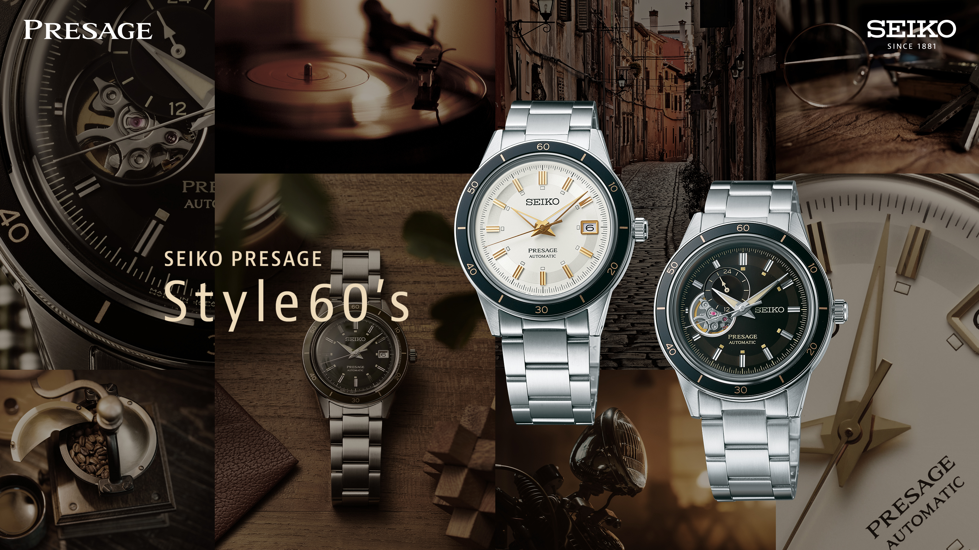 The new Seiko Presage "Style60's" series design takes its inspiration from the Crown Chronograph introduced in 1964. With contemporary earth tone colors, the watches combine the vintage design of the 1964 creation with contemporary elements to create a series with a retro feel perfect for modern times.