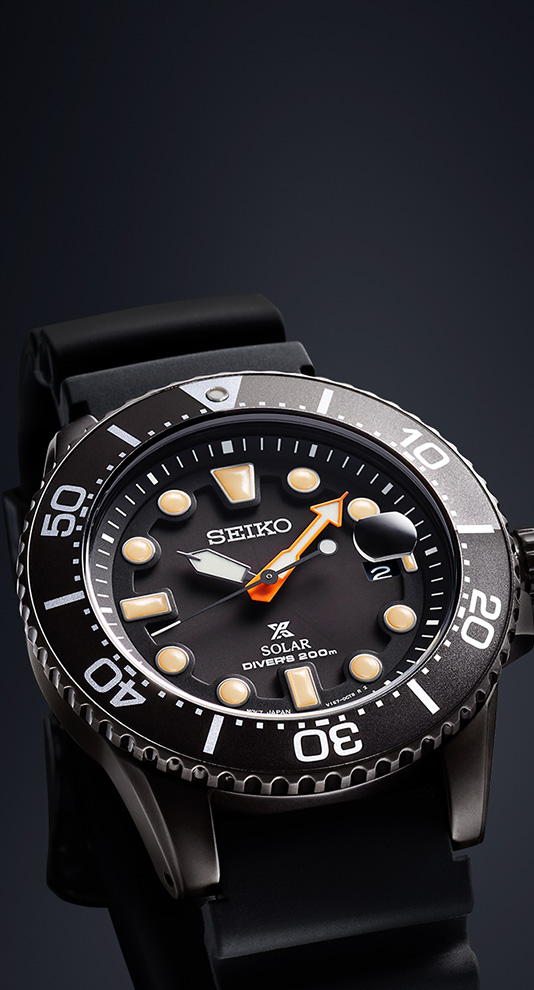 ด้วยตัวเรือนที่ได้รับการปกป้องด้วยการเคลือบดำซึ่งเป็นเทคนิคการเพิ่มความแข็ง ซีรี่ส์ที่ออกแบบขึ้นมาใหม่นี้สะท้อนถึงความมืดมิดแห่งท้องทะเลลึก และเพื่อสื่อถึงลักษณะของแสงที่นักดำน้ำยามค่ำคืนใช้ เข็มนาทีจึงเป็นสีส้มสดใสเพื่อให้อ่านค่าเวลาได้อย่างถูกต้อง แม้อยู่ในความมืดมิดก็สามารถอ่านค่าได้อย่างชัดเจนด้วยสารเรืองแสงลูมิไบรท์ อันเป็นเอกลักษณ์ของไซโก