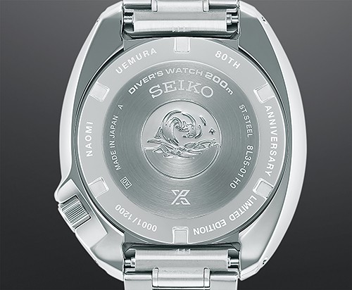 這款靈感來自植村的腕錶搭載 8L35 機芯,此款機芯是日本北部雫石腕錶工房的製錶師特別為潛水錶所設計。錶殼的超硬質鍍膜處理可保護腕錶不受刮傷,而內面防眩鍍層處理雙弧面藍寶石水晶確保從任何角度都能清楚讀取錶盤。此錶的防水深度也提升至200 公尺,附加的矽膠錶帶有著與原版錶帶相同的鐵軌紋理。