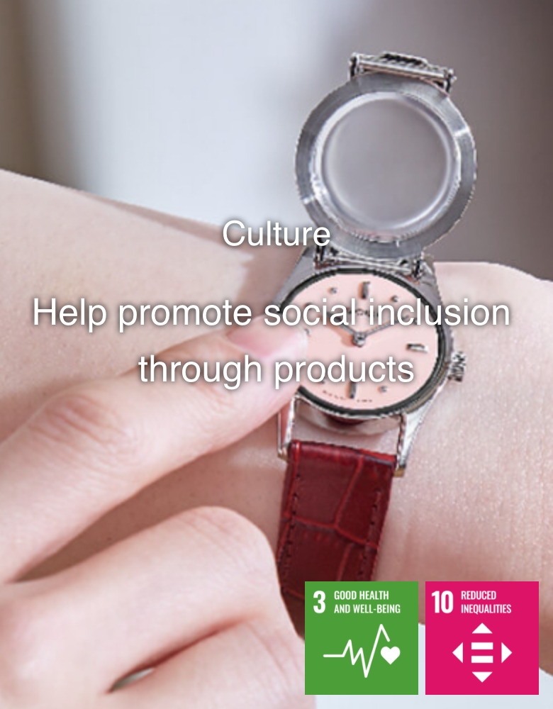 Seiko created a pocket watch for visually impaired people in 1939. Seiko then expanded the range to include a braille wristwatch in 1966 and a speaking digital watch in 1998. We have improved the range over time based on interviews with specialist organizations for visually impaired people. Today, the range is used across a wide variety of circumstances from daily life to sports events so users can enjoy more quality time.