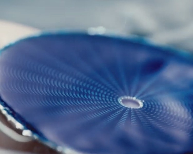 Hand-painting layer after layer of glaze onto the dial, Totani-san won't be satisfied until the enamel is perfectly even, the surface perfectly smooth, and the beauty of the pattern beneath fully revealed. For environmental reasons the glaze contains no lead, which is traditionally used to prevent bubbling. Totani-san must therefore use a microscope to evaluate the surface, and if a bubble is discovered, he will painstakingly remove it and return the surface to its ideal smoothness. When the dial is complete, he feels joy in its perfection. "Sharing this joy is my greatest satisfaction as a craftsman," he explains. "That is the beauty of Shippo Enamel."