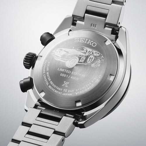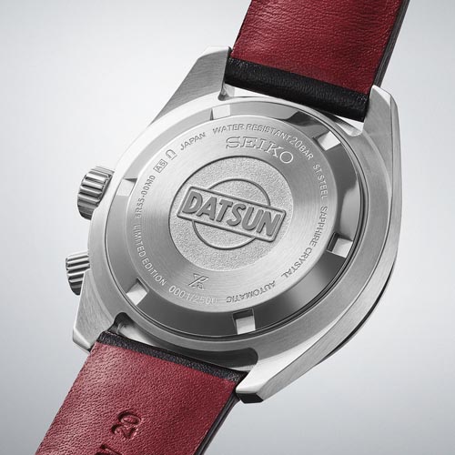 Iconic Datsun logos are engraved on two of the watches' case backs. The SPB517 features the brand logo used at the time, while the SRQ057 has a logo based on the emblem on the rally car. The SSC957 case back is adorned with an original illustration of the Datsun 240Z, specially made for this watch.