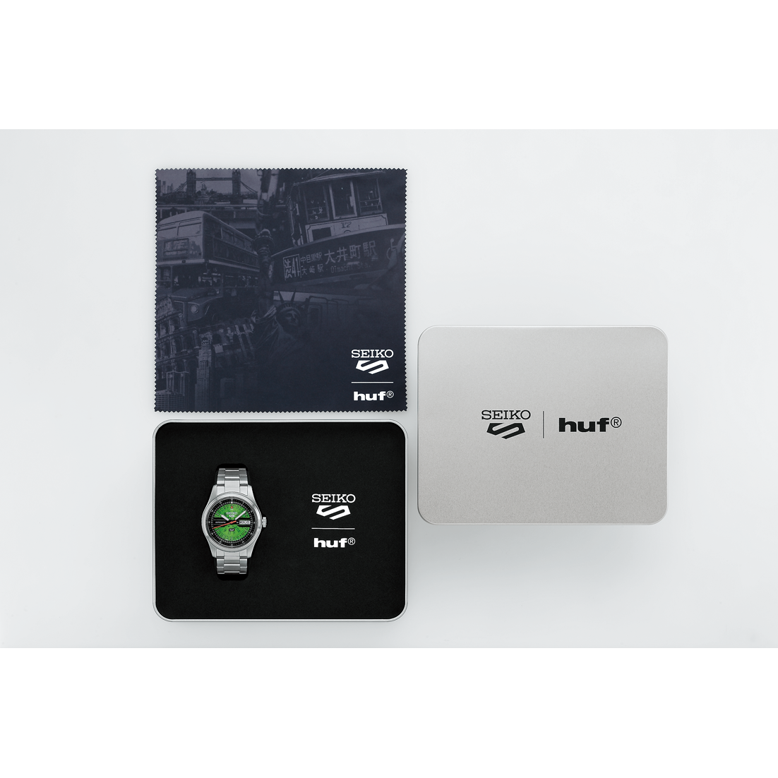 Based on the Seiko 5 Sports Field series with a “HUF Green” color.