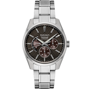 The Seiko Presage Sharp Edged Series case and bracelet incorporate many flat surfaces that have a modern sharpness that allows the watch to shine and sparkle from every angle. The precisely engineered and polished surfaces and the crisp edges of its silhouette contrast with the subtle hairline finish to create a pleasingly multi-dimensional effect.