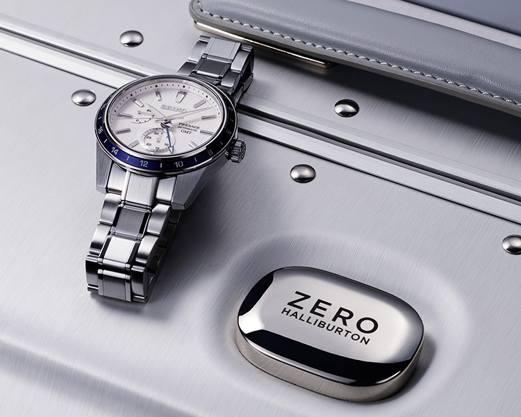 The Seiko Presage Sharp Edged Series introduces a timepiece in collaboration with Zero Halliburton, a premium quality travel-luggage brand renowned for its durability, reliability and cutting-edge design. Inspired by the brand's next-generation "Pursuit Aluminum Series", the watch incorporates a deep blue color that graces the series' travel wear. The limited edition watch captures the refined artistry and practicality that underpin both series.