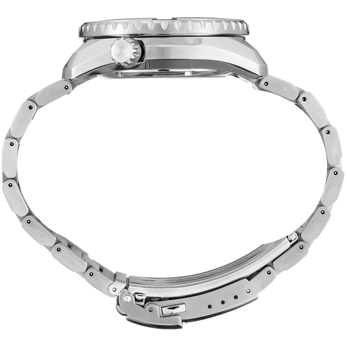 - Three-fold clasp with secure lock & push button release, solid & slide adjuster
