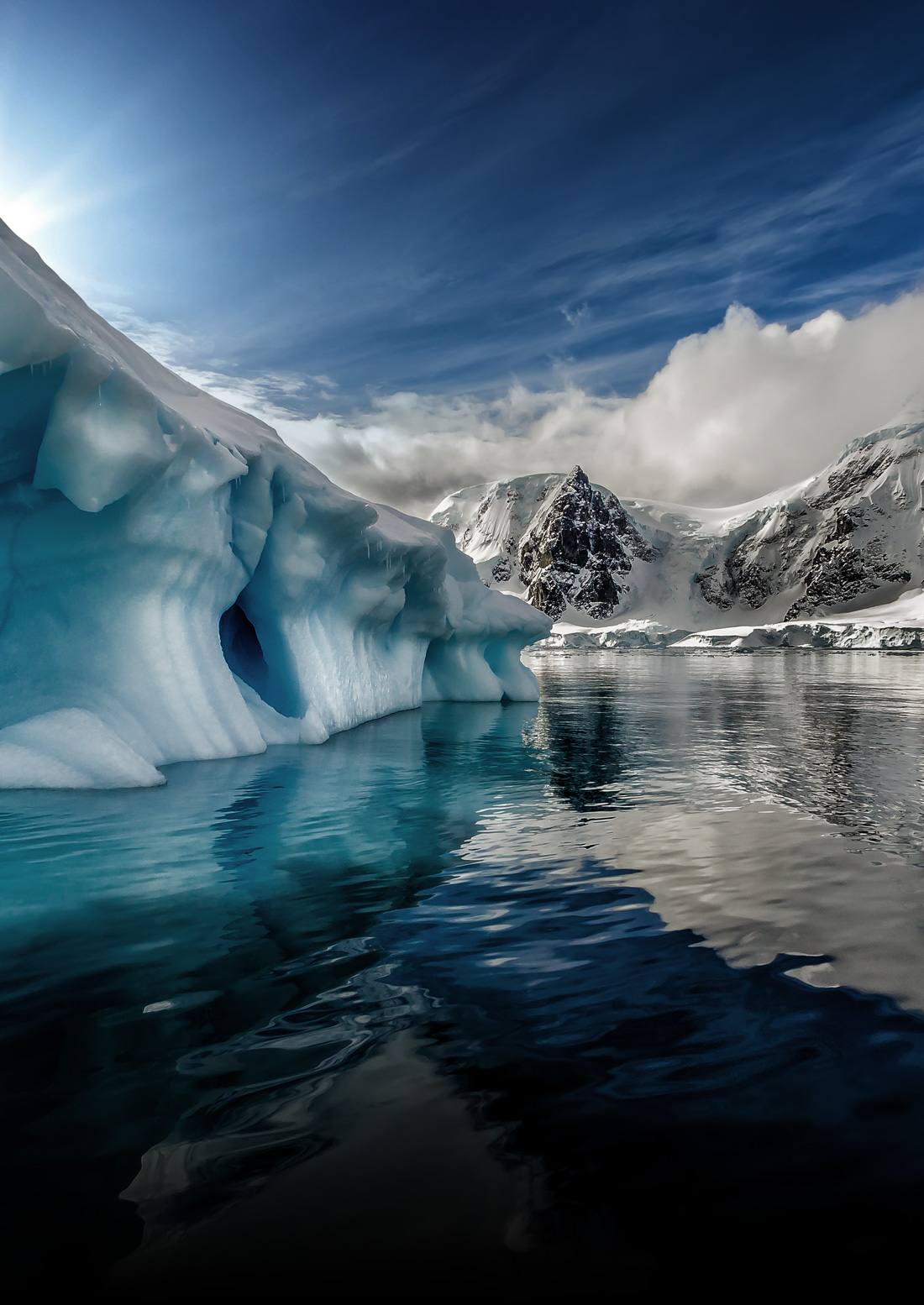 The patterned dial captures the feeling of the Antarctic landscape while the subtle gradation of the blue from light to dark echoes the hauntingly beautiful colors of the polar ice. The bezel's numerals and markings capture exactly the frozen scenery of blue-ice.